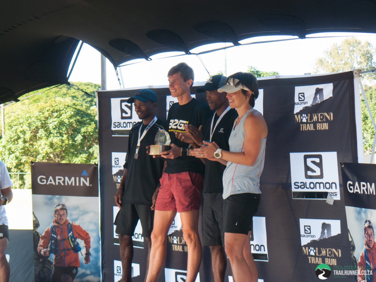 More than five minutes later Lucky Miya came in second, followed shortly by Thabang Madiba in third. Both athletes still looked very strong at the finish, and showed their incredible athleticism. Jock Green came top in his category (40 - 49), and Graeme McCallum top in his (50+). Interestingly, these two athletes took it easy due to their big race in the ultra world champs coming up, still managing to place top in their categories and to come in the top 10 of overall finishers. What incredible athletes.